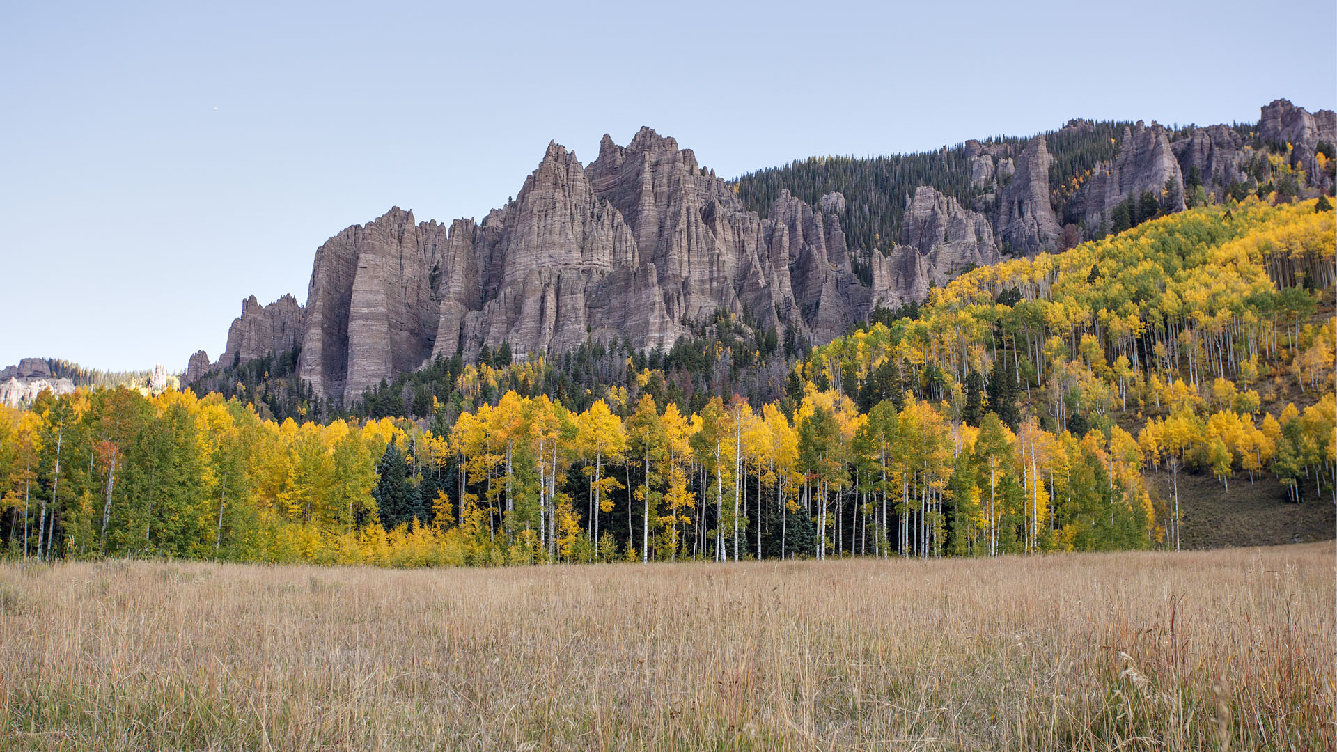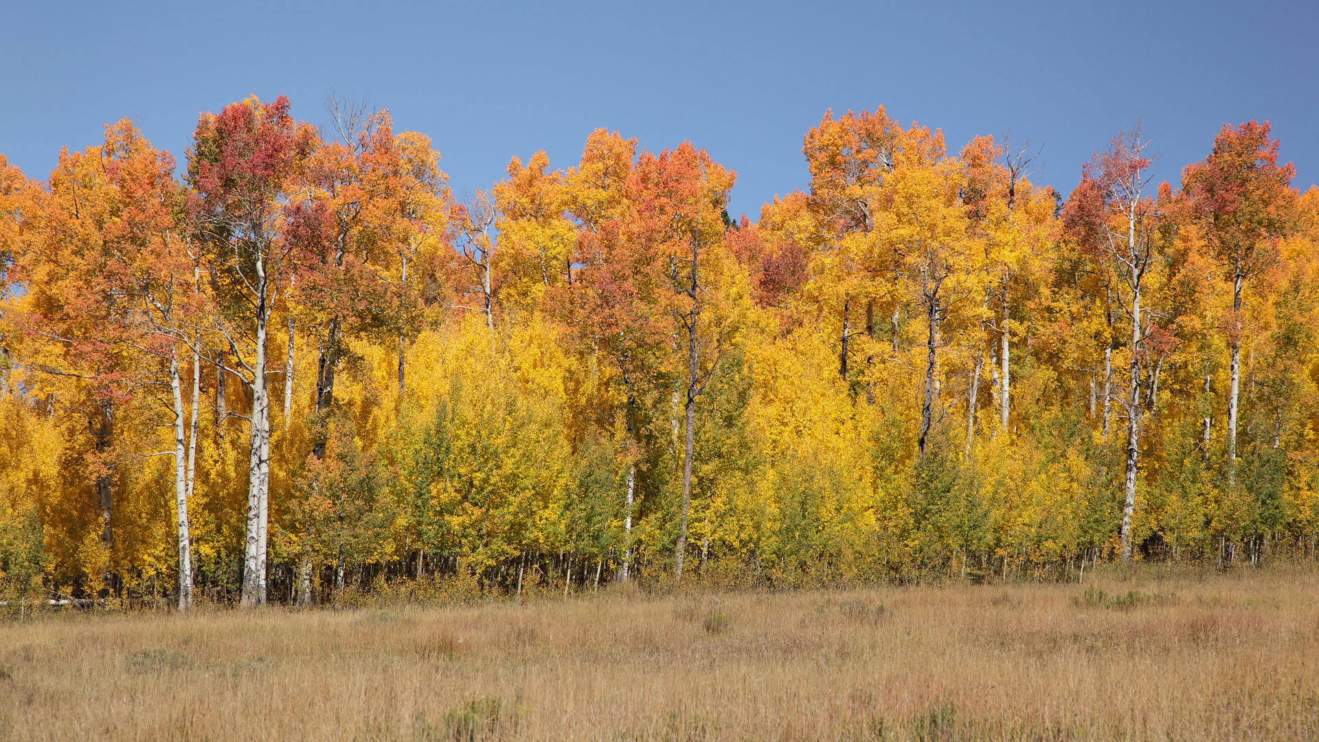 The Wall of Giant Aspens stays green much longer than the surrounding
