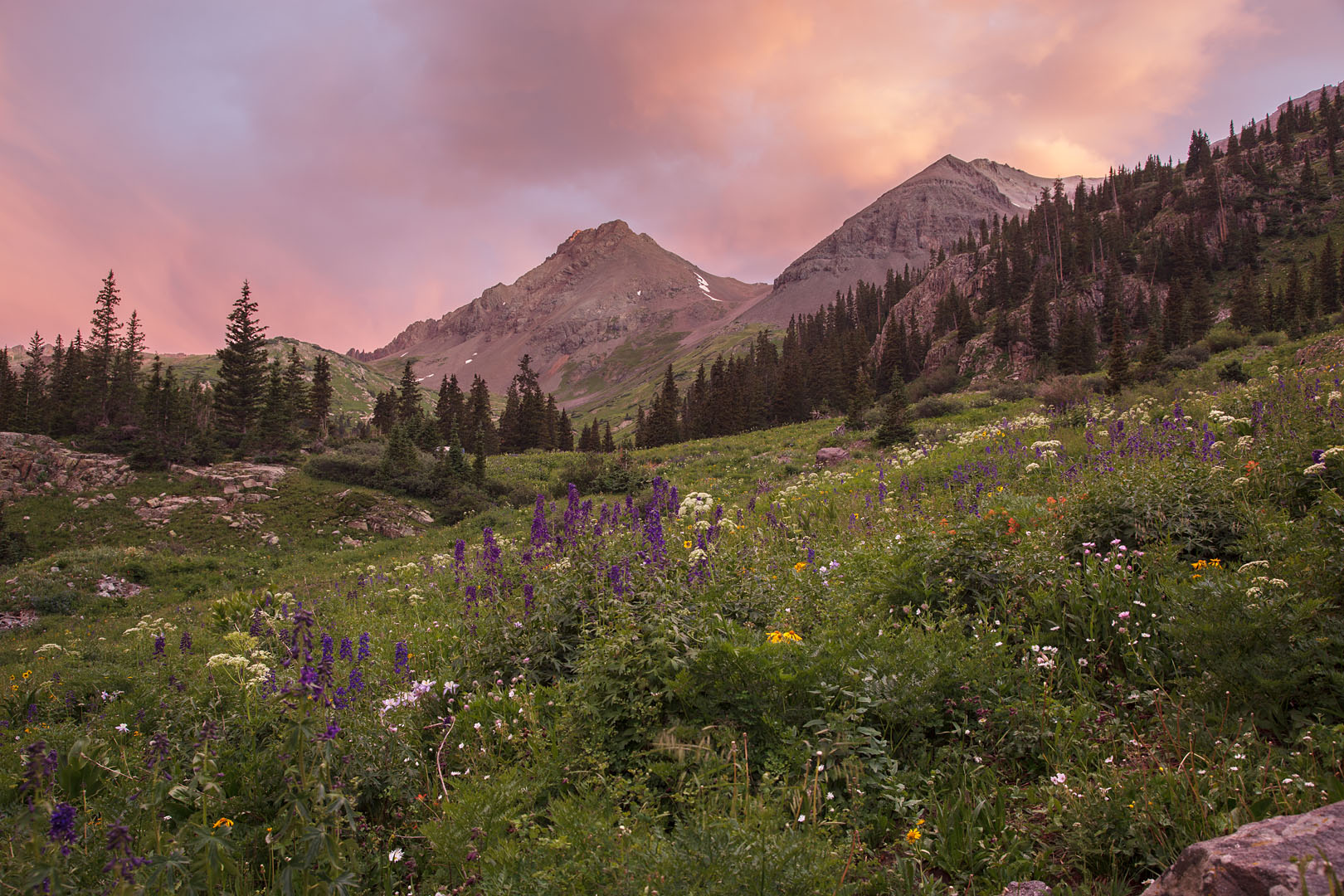 Yankee Boy Basin at sunrise, with Mt. Sneffels and Cirque Mtn in the