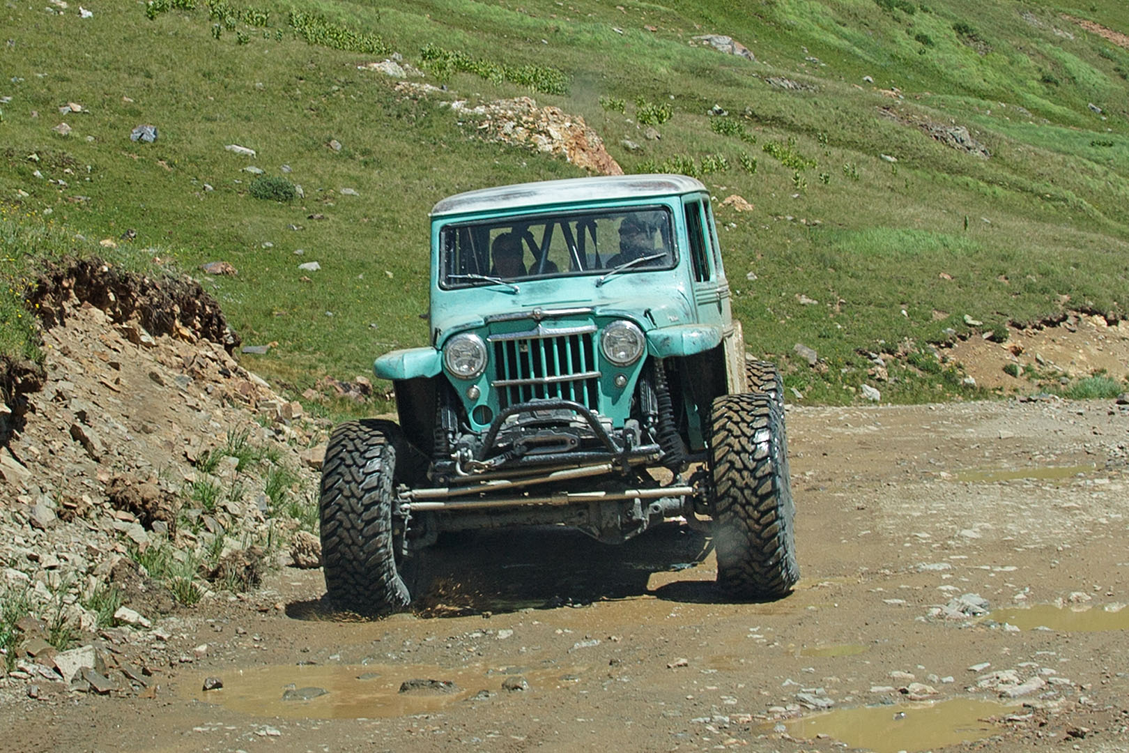 Cool 1960-ish Jeep Willys Wagon with 1-ton axles and coilovers.